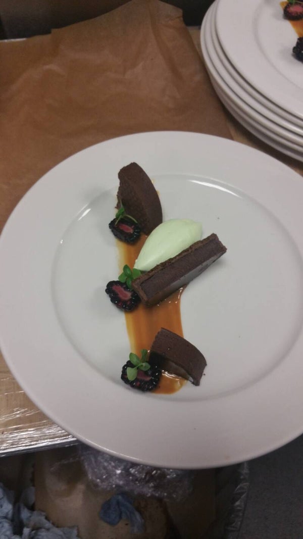 White & dark chocolate tart with peppermint cream and a fresh berry confit