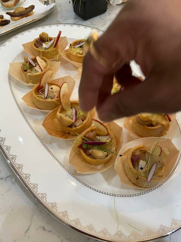 Goat’s cheese and basil tart with tomato chutney and caramelized onion